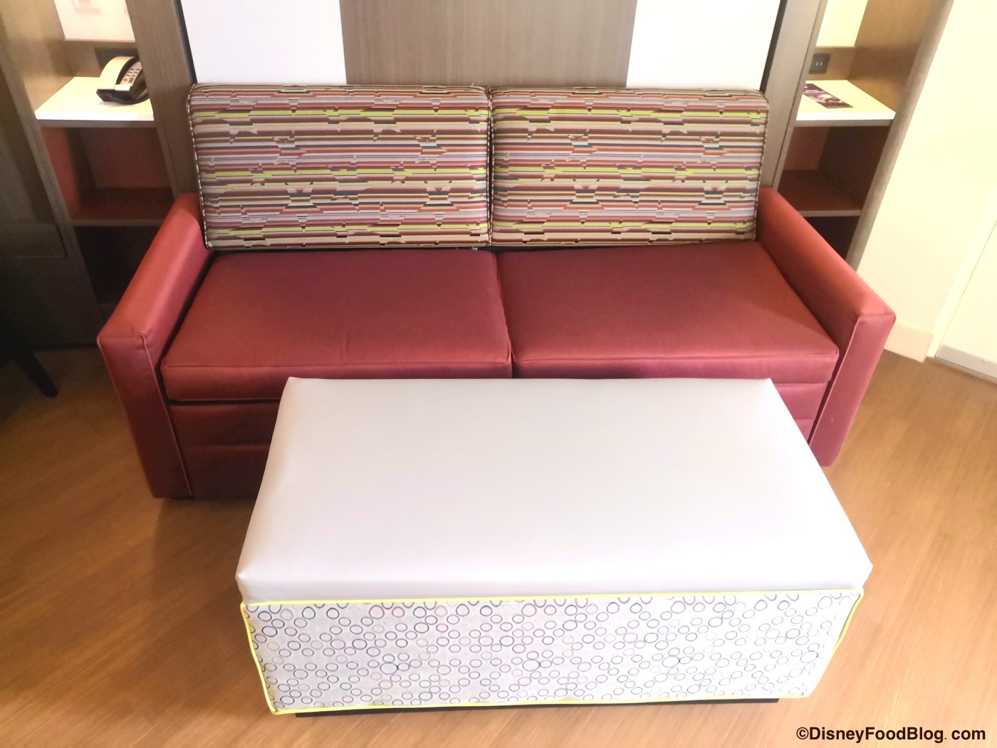 So, we typically enjoy a stay in a Disney World hotel, but this one was extra shocking for us. We stayed in one of the family suites and it was HUGE. We’re talking a living room with two murphy beds, two full bathrooms, a kitchen space, AND a master bedroom. Spoiler alert: With its newer furnishings, cleaner design, and layout, we actually liked these more than the more EXPENSIVE suites at Disney’s Art of Animation Resort!