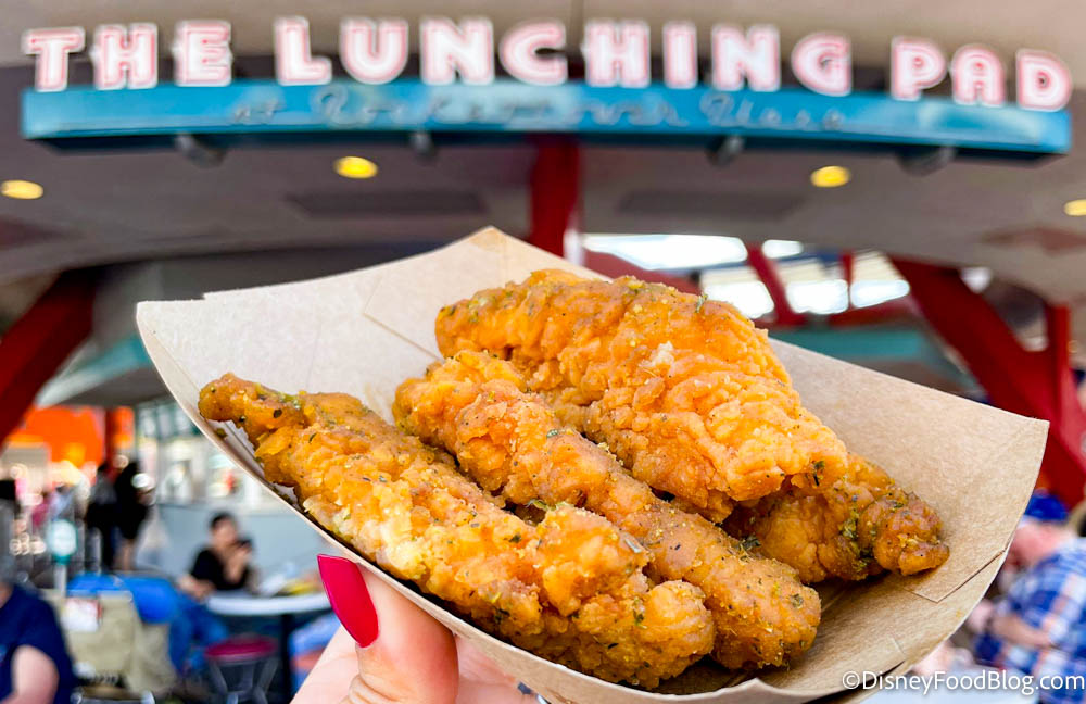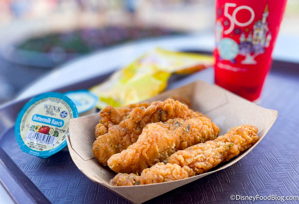 Overall, we thought these were a very tasty, quick meal for a Magic Kingdom day! We like that it’s basically a classic theme park food with an exciting twist that makes the chicken much more interesting. Keep following along with DFB, and we’ll let you know when we spot more 50th Anniversary snacks in Disney World.
