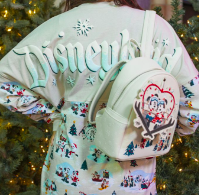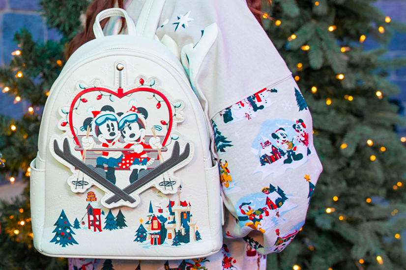 You can also get a backpack that’s decorated with snow-covered buildings and Mickey and Minnie on a ski lift.