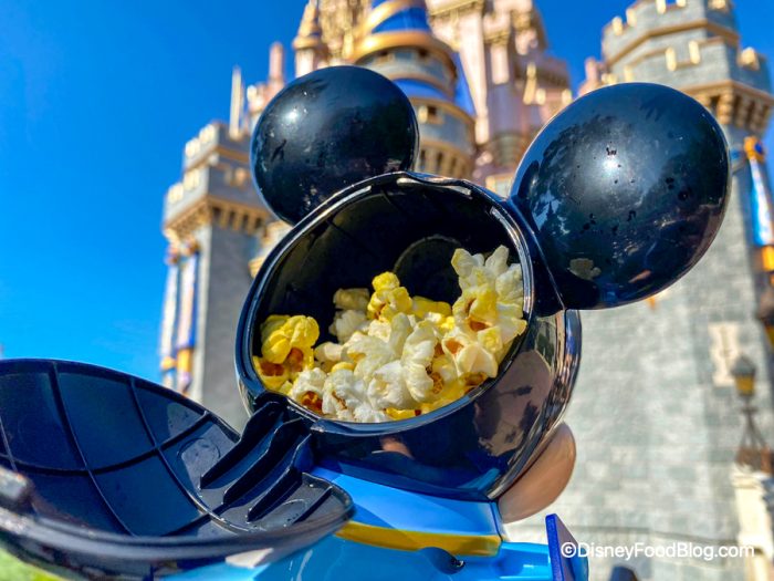 The new 50th Anniversary Mickey Mouse popcorn bucket is $18, and there’s a limit of two buckets per guest. Popcorn refills are $2 with the bucket.