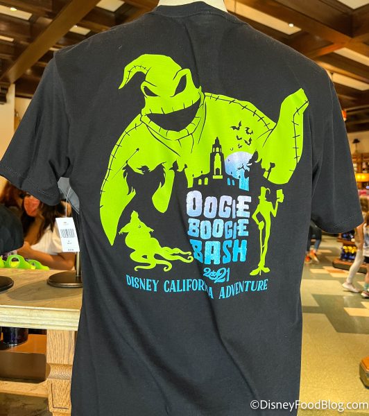 …and on the back is the Oogie Boogie Bash logo for 2021, along with silhouettes of villains.