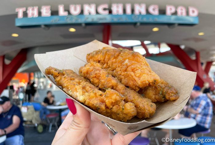 The Lunching Pad, a quick service restaurant in Tomorrowland, has added the “If You Had Wings” menu option, and they’re actually Caribbean jerk chicken strips served with a side of Lays chips or a Cutie orange for $10.49.