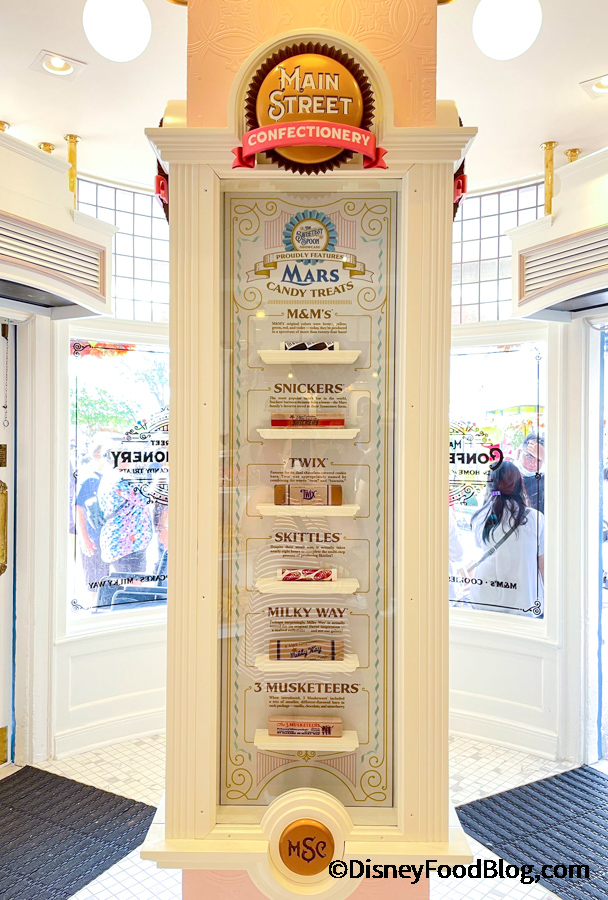 At the recently reopened Main Street Confectionery, you can find really unique details like this display featuring original candy bar packaging and fun facts! Did you know that Snickers was named after the Mars family’s favorite horse?