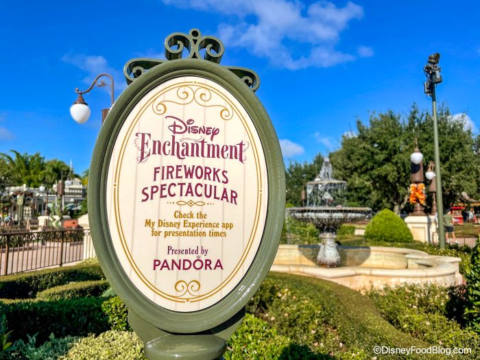 Signs advertising the Disney Enchantment fireworks show are now up in the Hub grass areas. For awhile these signs were just blank.