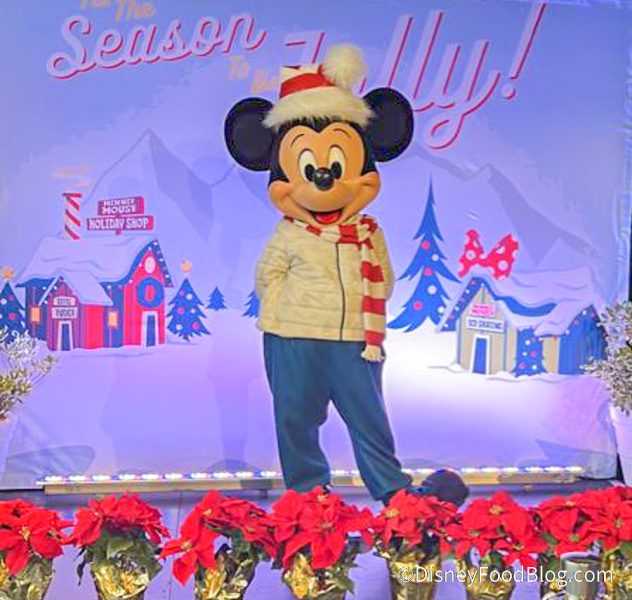 This exclusive limited-time experience can be found at The Magic Key Starcade Experience, near Space Mountain in Tomorrowland. This space is functioning as the Magic Key holder lounge. When Magic Key holders walk into the lounge, they can find Mickey greeting guests with holiday cheer!
