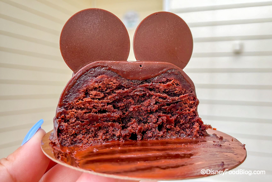 In terms of looks, we think this treat gets pretty good marks. It’s simple, but the Mickey ears and vampire fangs make it absolutely adorable. But, just how does it taste? We’re happy to report that the new(ish) Mickey brownie is very rich and chocolatey — perfect for chocolate fans! It tastes the exact same as the regular Mickey brownie offered here, but it now has adorable Vampire teeth!
