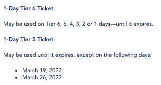 The tier 6 ticket costs $164 for a 1-day, 1-park ticket. If you’d prefer Park Hopper, the tier 6 option is $224.