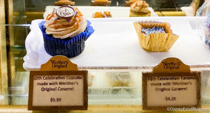 This remains one of our all-time favorite treats in Disney World, and the extra 50th pizzazz only makes it better. If you’re a chocolate lover who enjoys caramel, we think this is something you’ll really enjoy. If, on the other hand, you’re a pure vanilla cupcake fan, then you might want to skip this one.