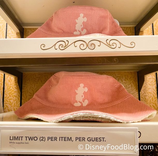 …as well as the adorable pink sherpa bucket hats for $39.99.