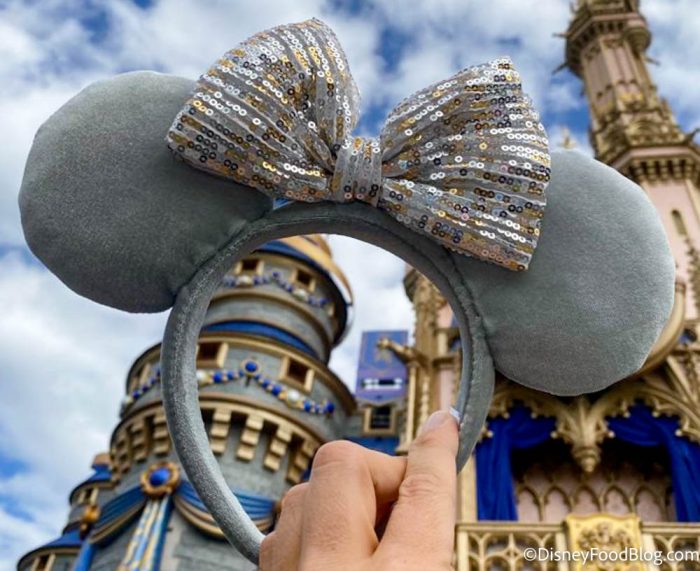 We’re calling them the Velvet Castle Ears, because the grey and gold color scheme reminds us of the Cinderella Castle!