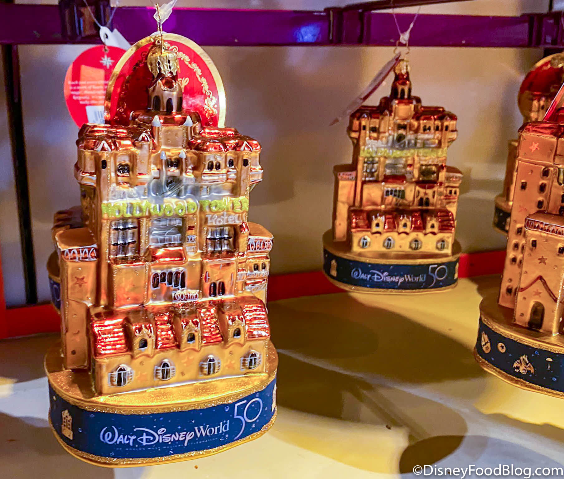 We found the Tower of Terror, Spaceship Earth, and Tree of Life Ornaments at Ye Olde Christmas Shoppe at Magic Kingdom (they had already sold out of the Cinderella Castle one when we visited). But we spotted all four at Disney’s Days of Christmas at Disney Springs.