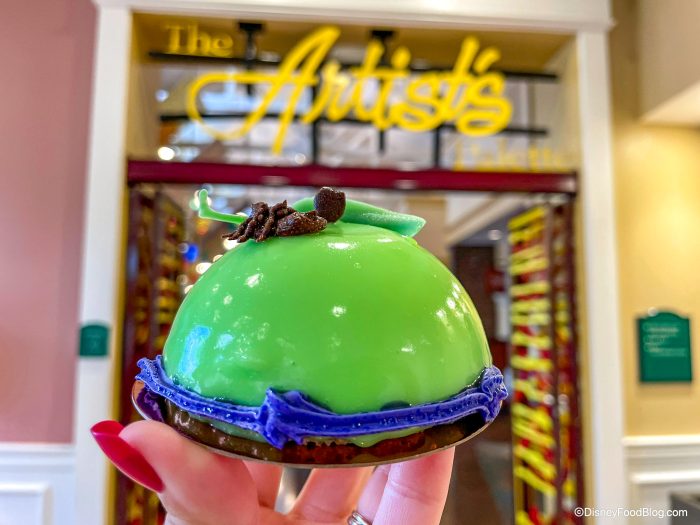 The Artist’s Palette at Disney World’s Saratoga Springs Resort (which is located right next to Disney Springs!) is known for its wide range of basic dishes, groceries, and its reputation as a secret spot to get creative, outside of the box cupcakes and treats!