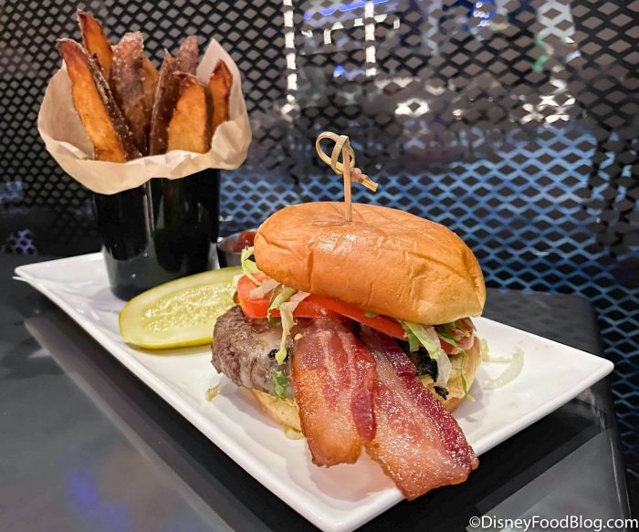 Next is the Centauri Burger with Signature Beef Blend, White Cheddar Cheese, Bacon, Shredded Lettuce, Tomatoes, Fried Potato Wedges, and Sriracha Aioli.