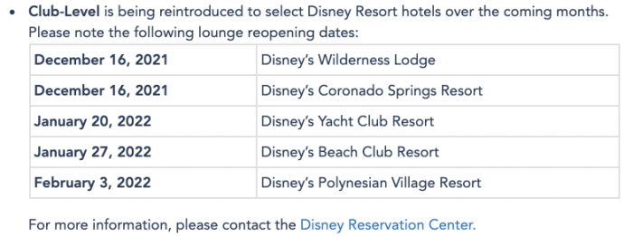 Disney’s Yacht Club Club Level rooms will reopen on January 20th, 2022, followed by the Beach Club on January 27th. The Polynesian Village Resort Club Levels will reopen on February 3rd, 2022.