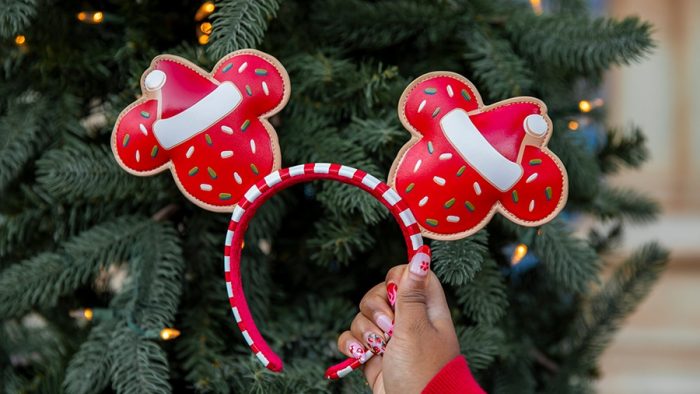 In addition to those, we’ll also be seeing this ear headband with Mickey Mouse gingerbread cookies wearing Santa hats. These will both be at Disneyland, Disney World, and online at shopDisney.com.