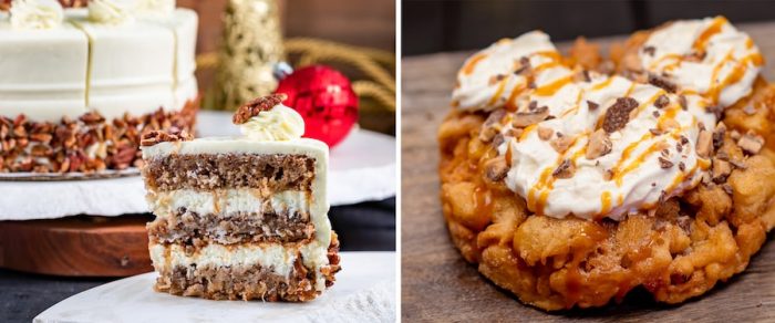 - Hummingbird Cake – Pineapple-banana spice cake with cream cheese frosting and candied pecans