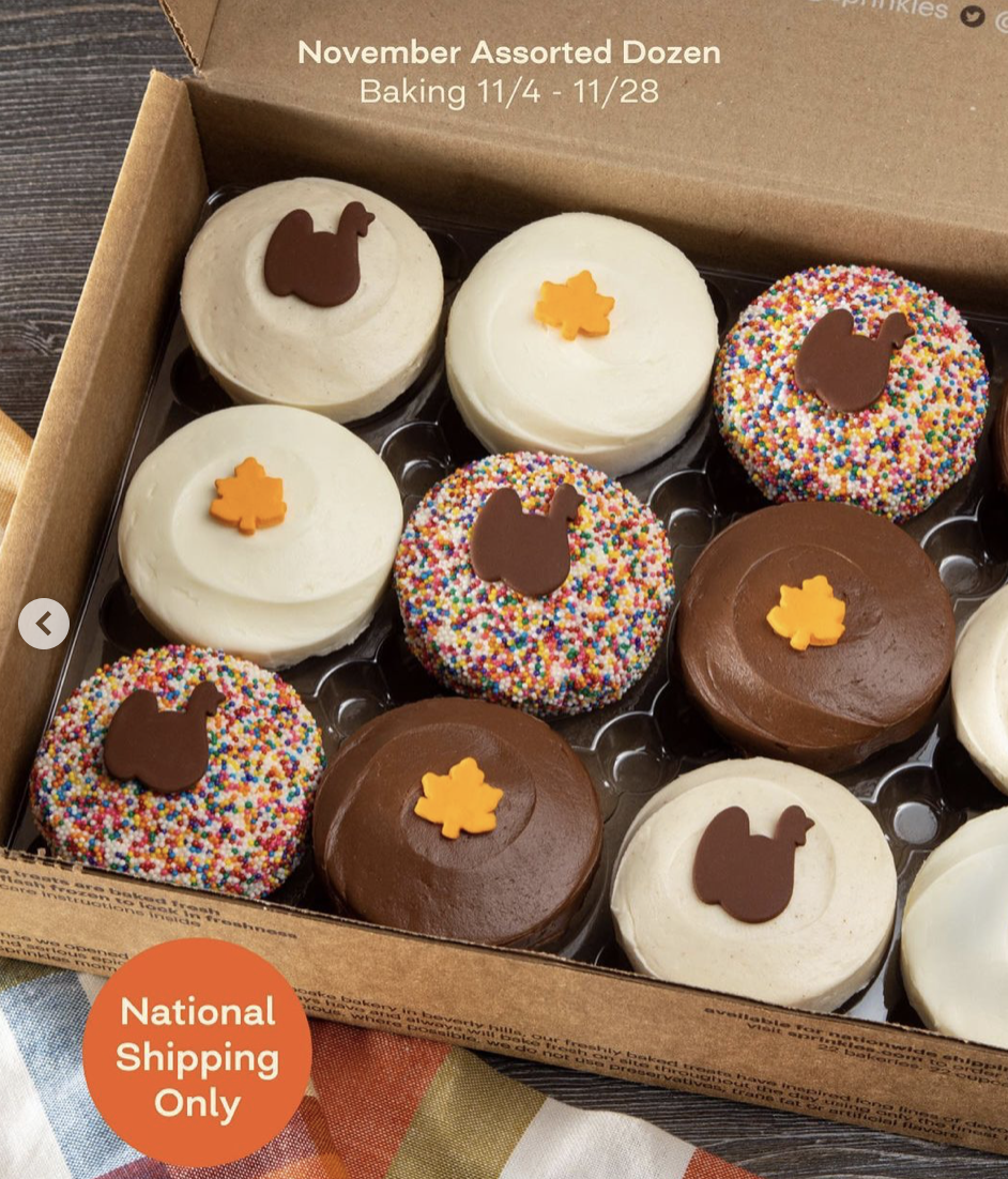 This month you can also order the November Assorted Dozen cupcakes from November 4th through November 28th, and you can even have it shipped to you if you live in the United States!