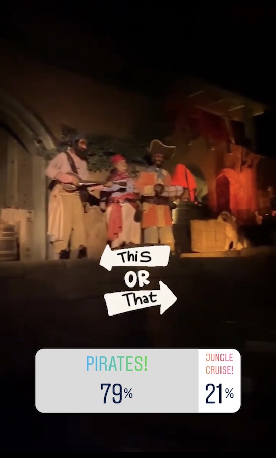 WHOA. In a rather huge blowout victory, Pirates of the Caribbean successfully sunk Jungle Cruise, earning 79% of the Insta votes! We love Pirates too but we also heart some cheesy dad jokes, so we’re not sure how to feel about this one!