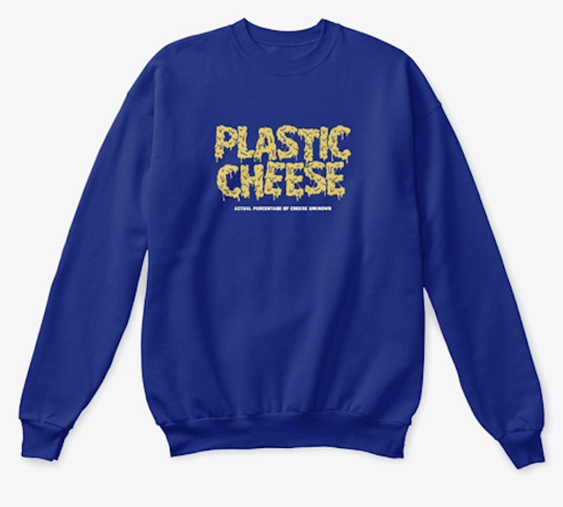 You can get a plastic cheese-themed sweatshirt, t-shirt…