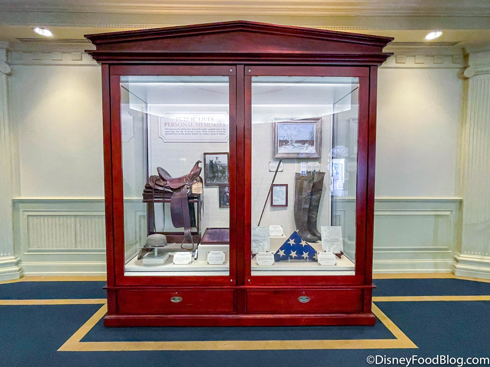 Later, these pieces were discovered and pulled out for the press event held for Walt Disney World’s 50th Anniversary. After the press event, the items were walked over to The Hall of Presidents where they now sit on display.