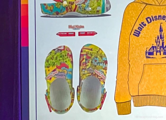 …an EPIC pair of park map patterned Crocs! These bad boys feature a Monorail on the strap and an old-school pattern inspired by the original Magic Kingdom map.