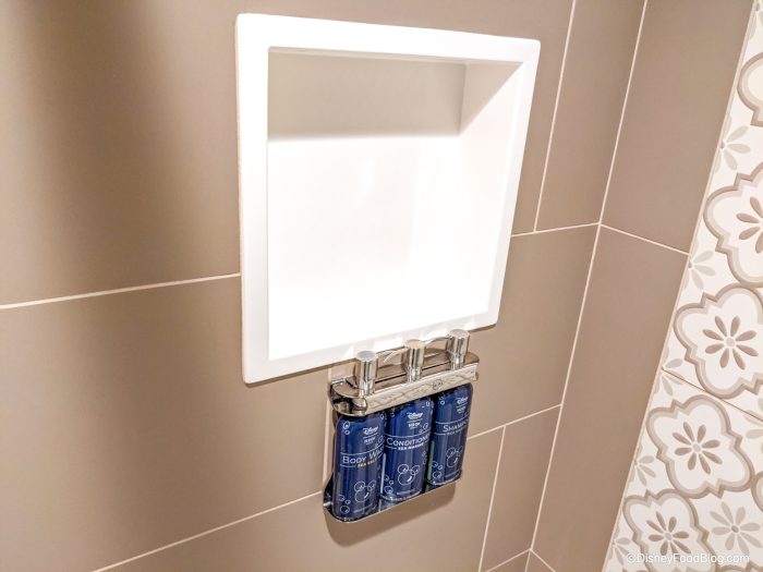 …and built-in body wash, shampoo, and conditioner with a pump.
