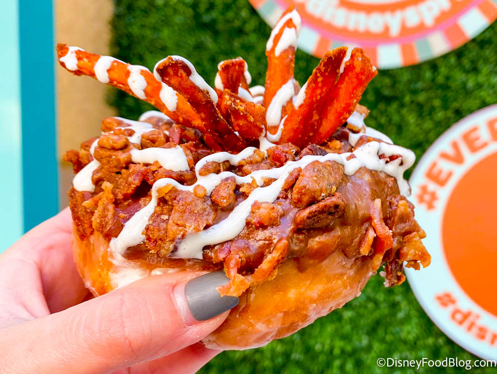Besides how irresistibly Instagram-able this donut is (seriously, those sweet potato fries look like a delicious firework), it also tastes fantastic! There’s some great saltiness coming from the fries and the bacon, which helps to balance out the sweetness from the marshmallow sauce, pecans, and donut.