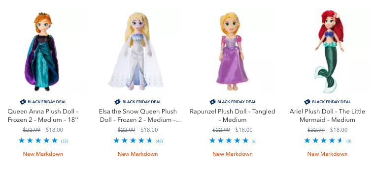 If you’re looking for dolls, you can get some classic dolls (like this Elsa one) for just $15 or $16 (down from $19.99).