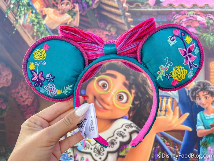 Disney’s new movie Encanto releases across the U.S. today, and they’re celebrating at Disney World in stylish fashion with the new Encanto Minnie Mouse Ear Headband for Adults. We spotted it online a few weeks ago, but now it’s in Disney Springs at World of Disney.