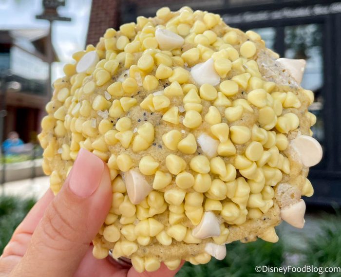 Just a few examples of these massive cookies we’ve tried recently include the Lemon Poppyseed Cookie, The Rocky Road Cookie, and the Peanut Butter Espresso Cookie, all for $6 each. Be sure to arrive early at Disney Springs to get a good spot in line! Like the donuts above, we get it — $6 for just a cookie? But these things are half a pound EACH. You could eat one by yourself but it’s tough — we recommend enlisting a friend for help!