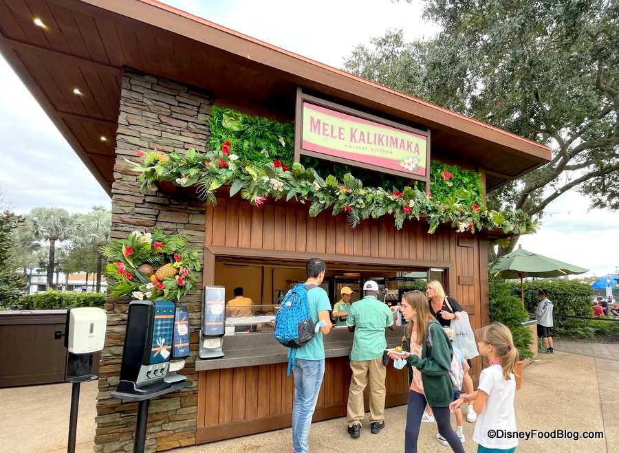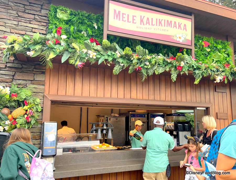 If you’re anything like us, you can’t help but sing 🎶Mele Kalikimaka🎶 as you read the name of Disney’s Hawaiian Christmas-themed festival food booth.