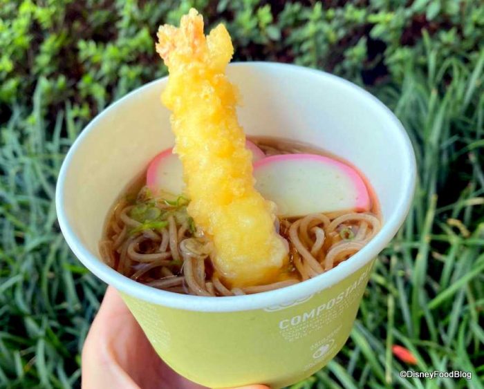Next is the New Year Celebration Soba which is made with buckwheat soba noodle in a hot dashi soup with shrimp tempura, fish cake, shiitake mushrooms, and chopped green onion. This dish will cost you $8. We first tried the soba in 2018, but it had a few ingredient changes in 2019. Ramen fans will probably really like this snack! We loved the shrimp in the bowl because of the tempura texture and flavor.