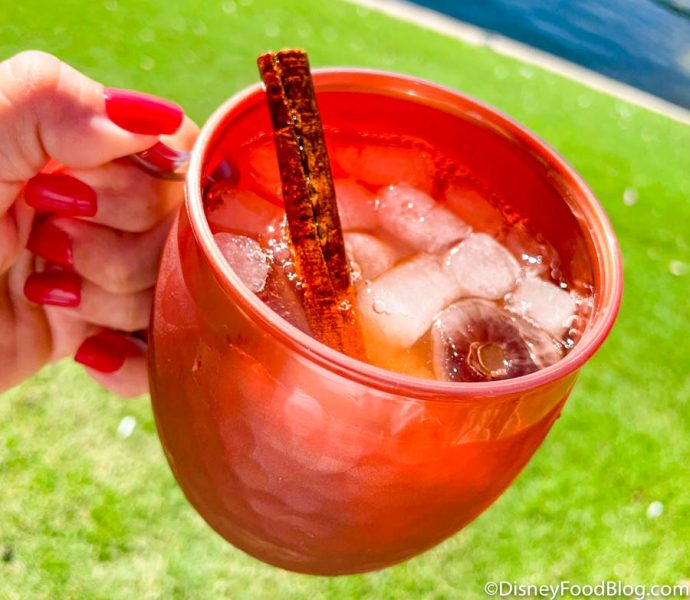 This was another fabulous menu item at Refreshment Port! The ginger flavor was definitely the strongest flavor we noticed; in fact, we didn’t pick up on the pumpkin flavor much at all. Still, it’s not super sweet and you can definitely taste the alcohol — a big plus when you’re dropping $11 on a drink! Cocktails can be hit or miss at EPCOT’s festivals, but this one delivered!