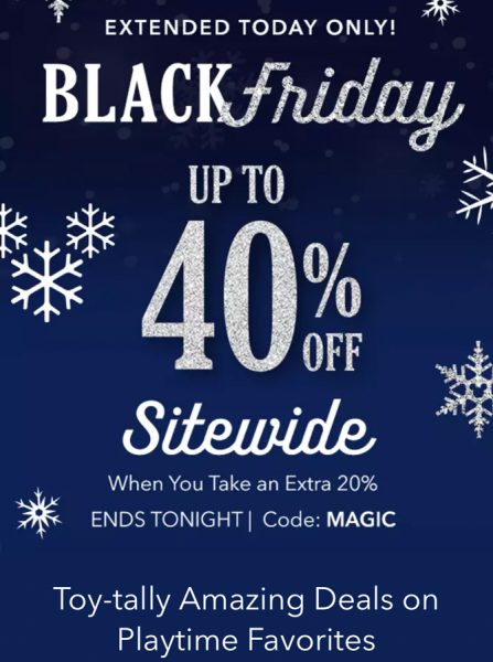 The Black Friday deal on shopDisney has been extended through today only! You can take up to 40% off Disney toys, games, and more when you use the code “MAGIC” to get 20% off at checkout. If you need some ideas, here are a few items you can grab while they are on sale.