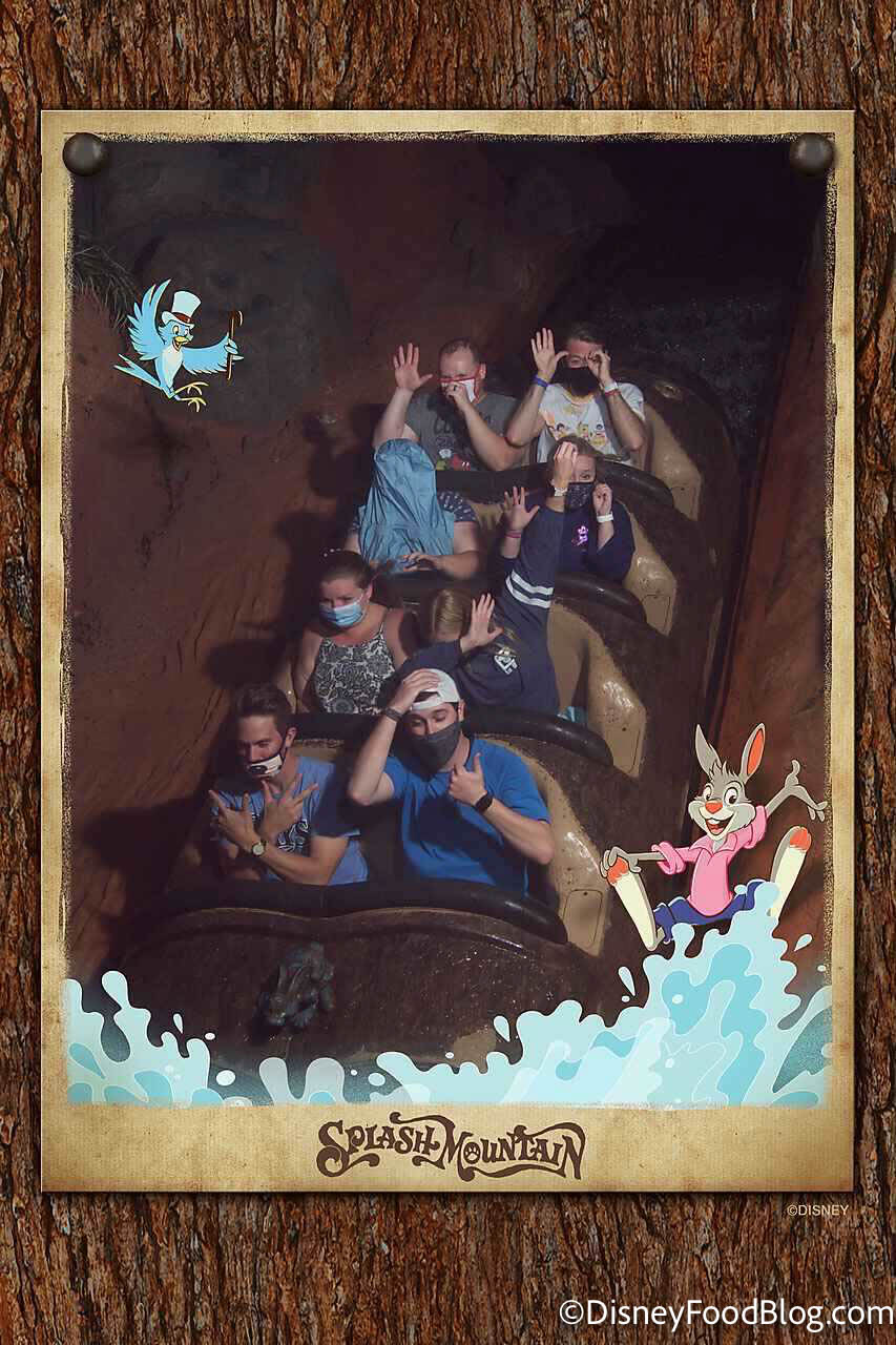The final plummet on Splash Mountain is no small feat at 50-feet tall, and it looks like our DFB writer (top left) had some concerns when it finally came to the drop. She wasn’t the only one ready for her close-up, though, someone is even taking a nap back there!