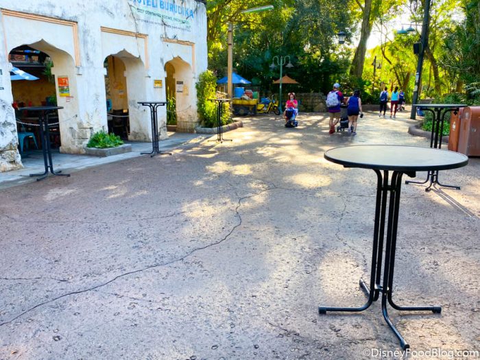 Harambe Market in Africa had a few more tables outside where guests can stand while they eat.