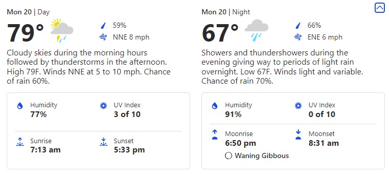 Once again, keep in mind that Florida weather is typically very changeable. So, keep checking back to make sure you don’t get caught unawares.