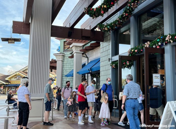 We stopped by World of Disney this morning to check out the merch selection they had in store, and we spotted a HUGE crowd waiting to get in before the store even opened! Guests were lined up waiting to enter the store, and we noticed some people struggling to find the end of the queue…