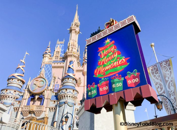 You can now catch Mickey & Minnie’s Very Merry Memories stage show at Cinderella Castle in Magic Kingdom! Today’s showtimes were listed for 4:35PM, 5:50PM, 6:50PM, and 9PM when we checked My Disney Experience this afternoon.