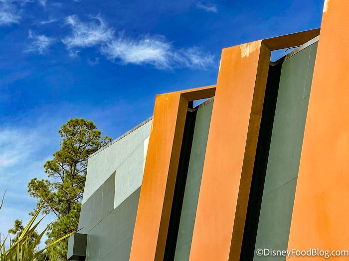 Just across the way from work being done on Mouse Gear, progress is also being made on the new indoor roller coaster, Guardians of the Galaxy: Cosmic Rewind. We’ve been seeing A LOT of changes being made to the exterior of the building and when we passed by recently we noticed that the side of the building closest to the walkway was almost done being painted.