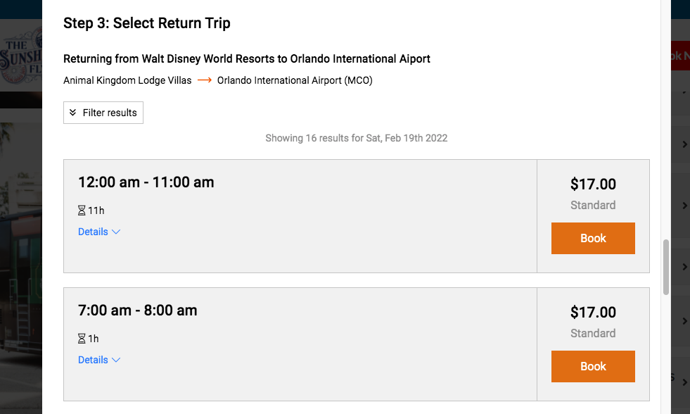 Reservations for The Sunshine Flyer must be made at least 4 days ahead of your arrival. To book, you’ll visit The Sunshine Flyer website and put in the required information about where you want to be picked up, where you’ll be headed, and the dates of your trip.