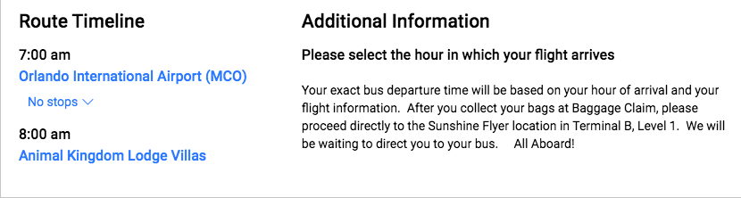 So it looks like the main difference here is that you select those departure/return times for The Sunshine Flyer, while you are required to put in the flight information for Mears Connect so they can make some of those arrangements.