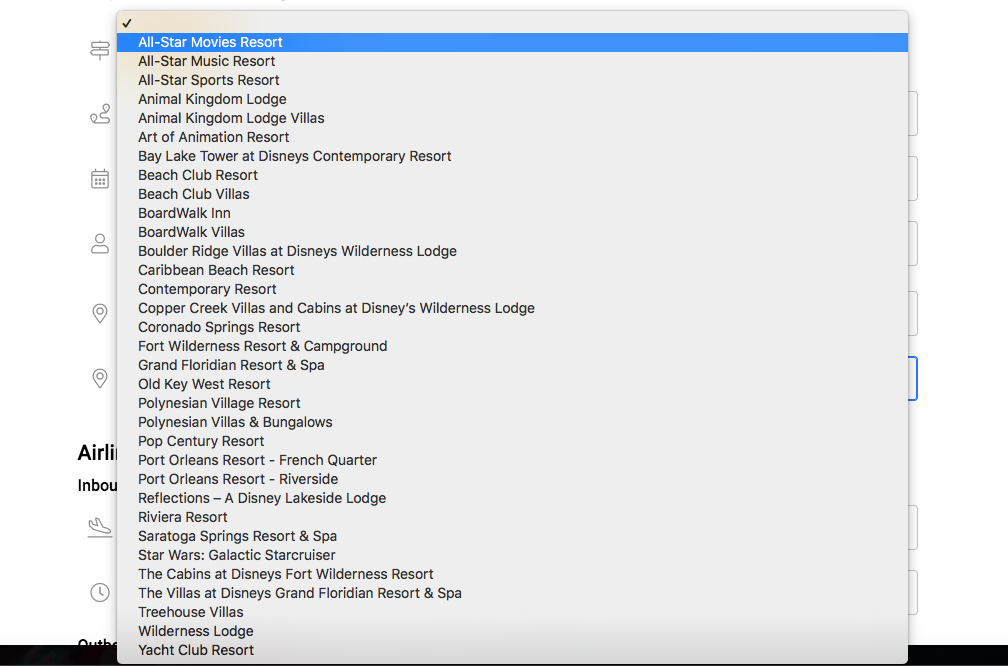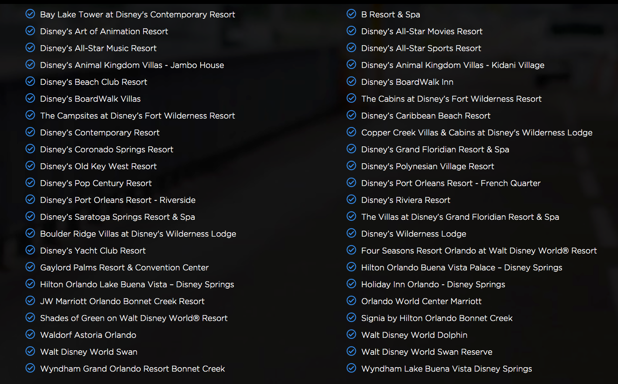 The Sunshine Flyer will transport guests to the Disney World Resorts. Here’s a full list of the hotels currently available when selecting the location you want to be taken to/picked up from. From what it looks like, the list is currently limited to just Disney owned-and-operated hotels. The list does not include those Disney Springs hotels or other nearby Orlando hotels.