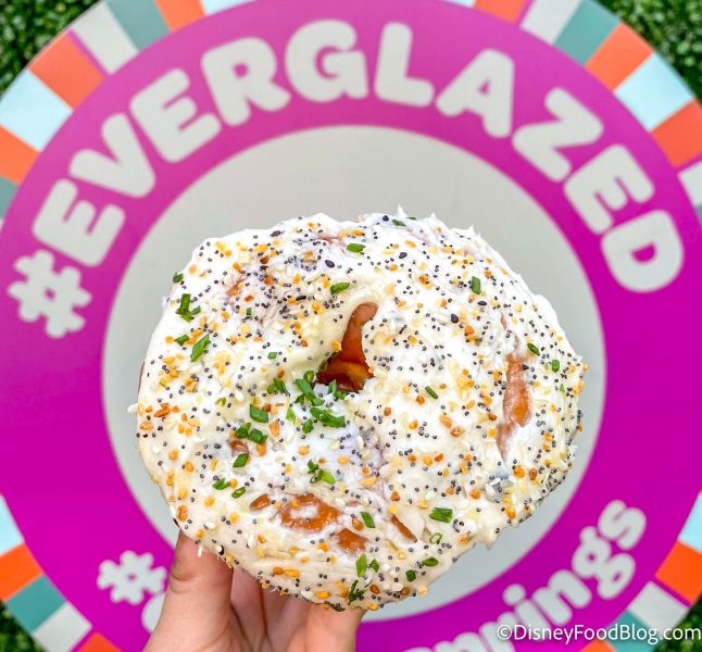 Everglazed Donuts & Cold Brew made a CHOICE in Disney Springs recently with the Everything Donut, a donut made up of a classic glazed donut topped with Boursin buttercream, everything bagel seasoning, and freshly chopped chives for $6.50.
