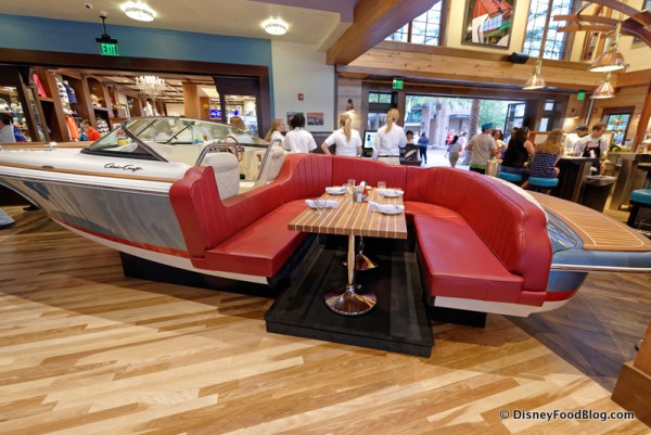 There are plenty of tables at this seafaring restaurant, but not many are in an actual boat!