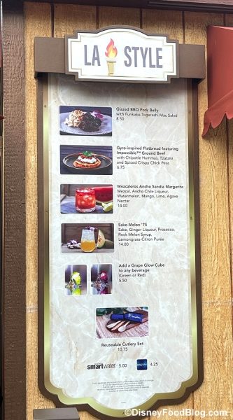 - Gyro-inspired Flatbread featuring Impossible Ground Beef with chipotle hummus, tzatziki and spiced crispy chickpeas (available with Sip & Savor Pass) (NEW) — $6.75