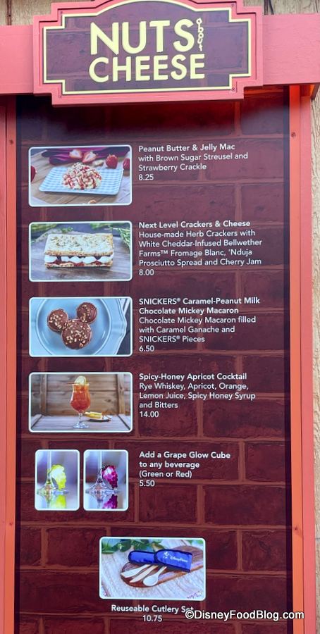 - Next Level Crackers & Cheese: House-made herb crackers with white cheddar-infused fromage blanc, spicy prosciutto spread, and cherry jam (available with Sip & Savor Pass) (NEW) — $8.00