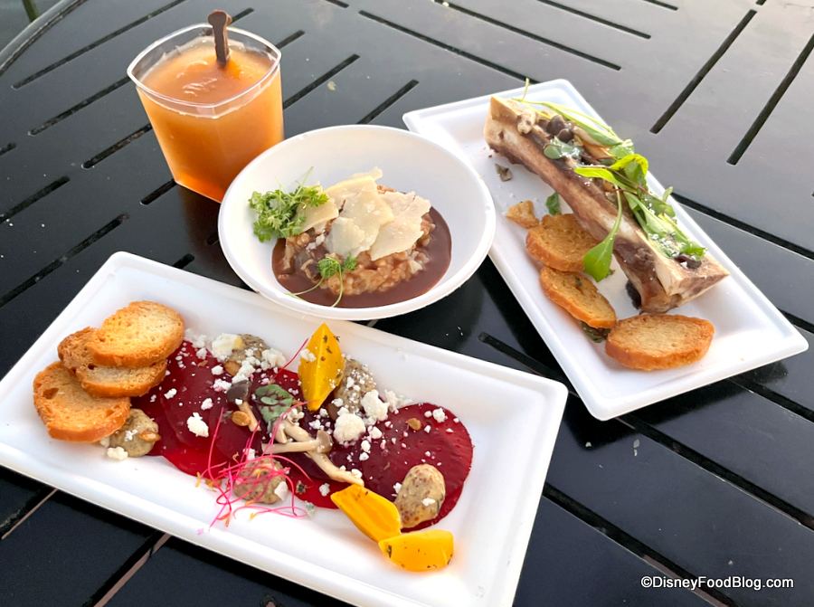 - Blood Orange-braised Beet Carpaccio with mustard vinaigrette, pickled clamshell mushrooms, golden beets, and crostini (Wonderful Walk of Colorful Cuisine – Red) (Planted-based)(New) — $5.50, DDP Snack Credit Eligible