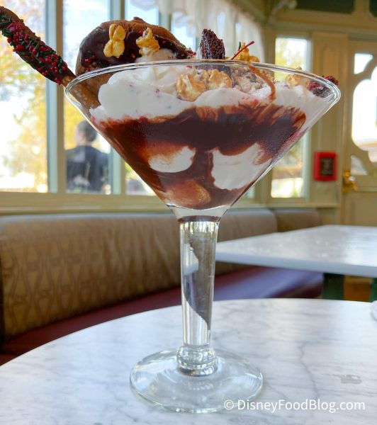 The “Cheers to 50 Years” has been around since October 1st of last year, but Disney announced that it would be ‘refreshed’ starting today! This massive $32 dessert comes with Chocolate and Vanilla Ice Cream, Brownies, Pretzels, Hot Fudge, Caramel Corn with Chocolate Drizzle, White Chocolate-dipped Chocolate Chip Cookies, and Whipped Cream…all with a Cherry on top.