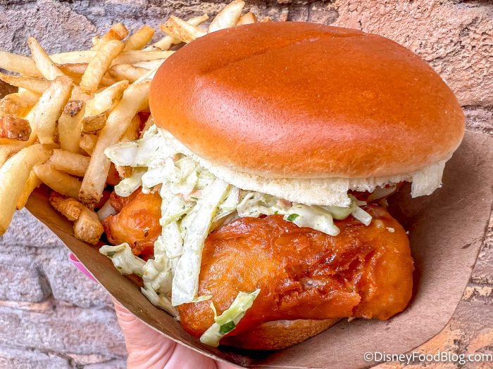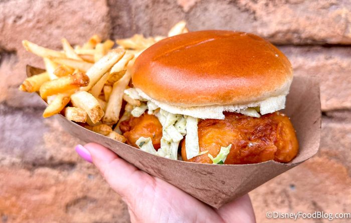 We’re kind of wondering why this sandwich didn’t end up at Pecos Bill Tall Tale Inn and Cafe given the name! If you want to try it, visit Golden Oak Outpost in Magic Kingdom. Keep reading DFB for more Disney World food reviews!